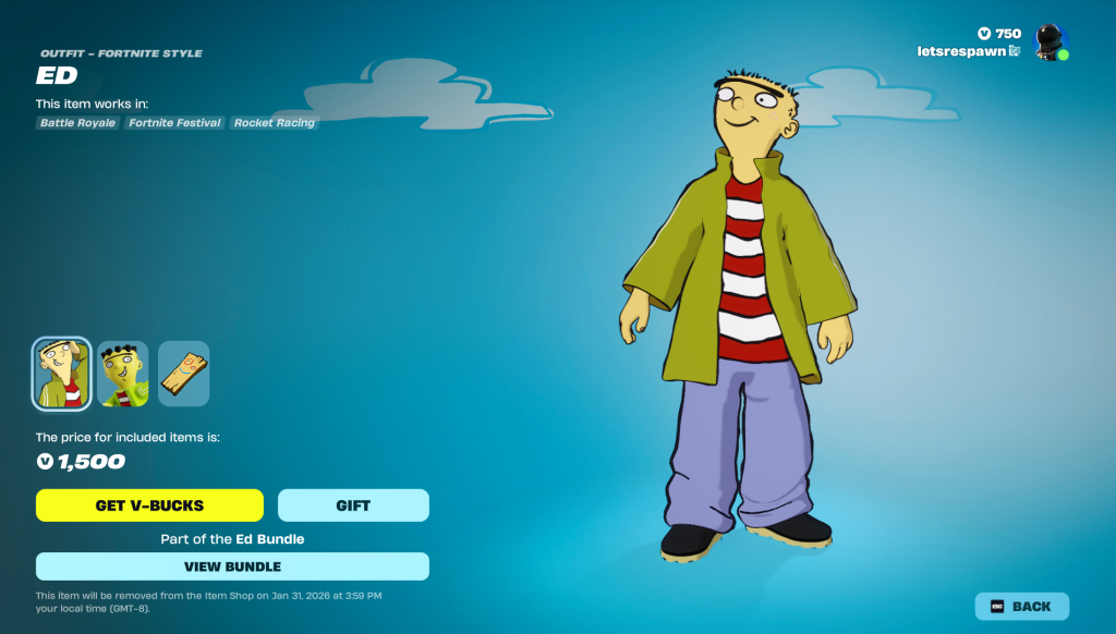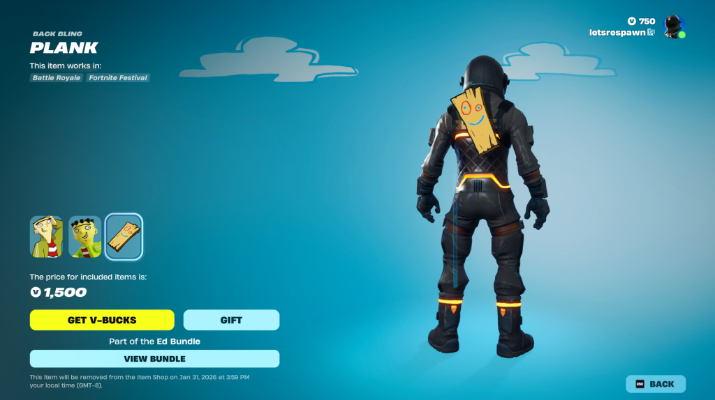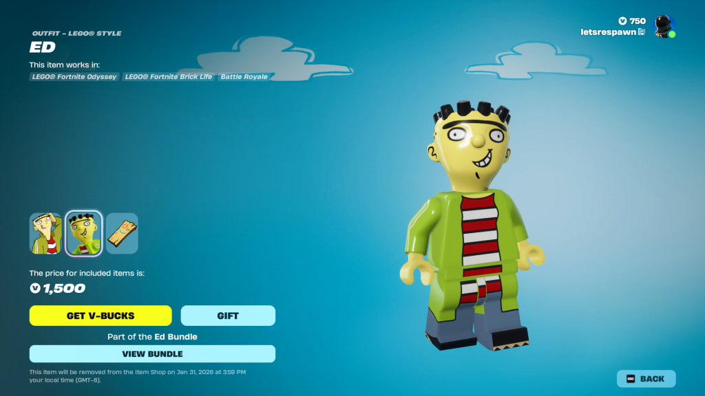 The Ed skin is now available for a limited time in the Fortnite item shop. For the next 5 days (Jan 31, 2026) you can purchase the Ed Skin which also includes a lego variant and a brand new back bling called the Plank. On top of this EPIC Games have released a matching pickaxe known as the Jaw breaker to go along with the collab. While nothing has been mentioned about the release of the Edd & Eddy styles, it’s safe to assume that these will be added in at a later date. You can view all the screenshots & prices below.
